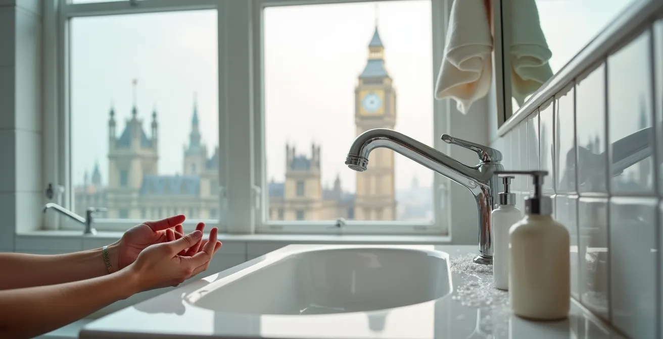 But what if the problem isn’t just dryness? As a dermatologist practising in London, I see the real effects daily. The issue is far more complex than a simple lack of moisture. It’s a chemical battle happening on your skin’s surface. The high concentration of calcium and magnesium in our water creates an invisible film—a mineral matrix—that suffocates the skin, clogs pores, and actively prevents your skincare products from working effectively.